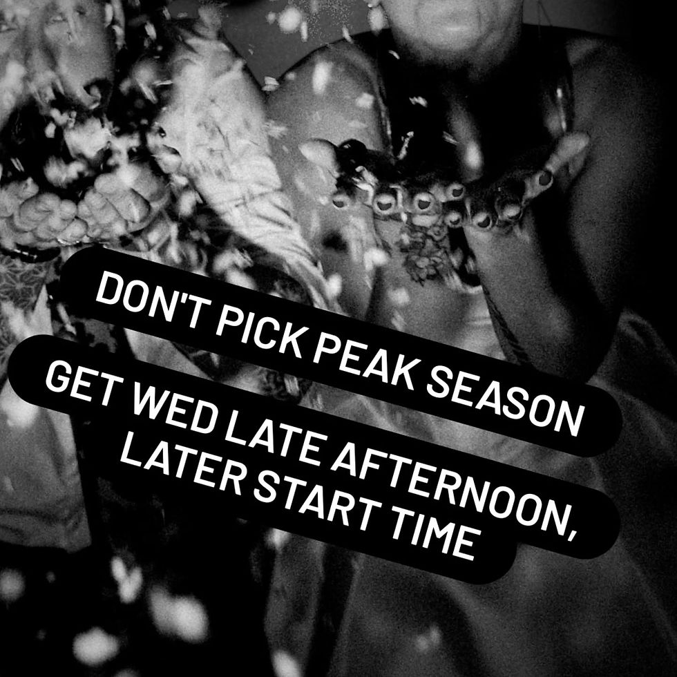 These are suggested and potential money saving options for your alternative wedding day. This all comes down to your personal priorities. Choosing an option that best suits you both and makes you most happy will always be the winner. Sit down together, discuss your wedding budget and tick off what is important and meaningful to you. Realistically, there will always be compromise, that does not mean you can't have what you want ❤️🖤🤍